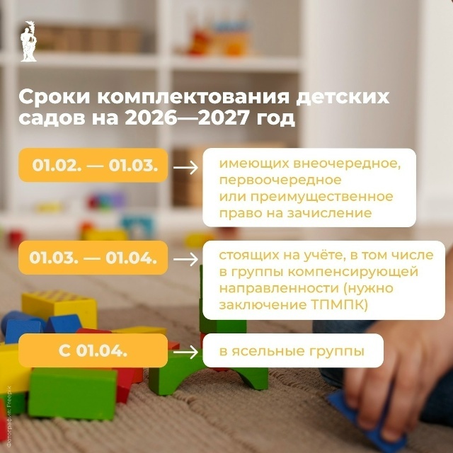 Информация о сроках комплектования дошкольных образовательных учреждений Центрального района Санкт-Петербурга на 2026-2027 учебный год